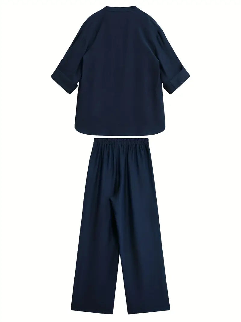 Relaxed sophistication at its finest – the Beatrice™ Casual Commuter V-Neck Set combines all-day comfort with effortless style. The flowing two-piece set drapes beautifully, offering a relaxed fit that’s perfect for casual lunches, evening strolls, or simply feeling put-together while going about your day.