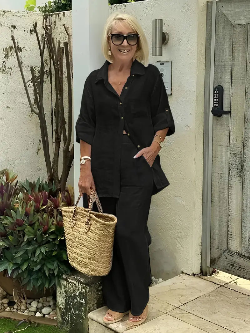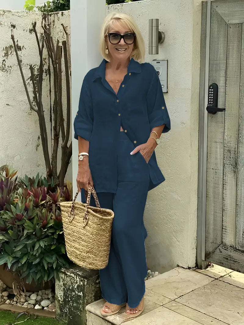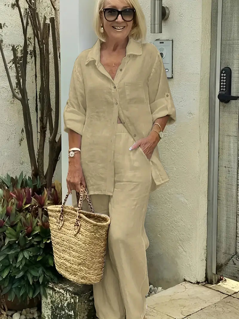 Cool, breezy, and effortlessly chic – the Millie™ Effortless Elegance Two-Piece Set is your perfect companion for warm days. Made with lightweight linen, this set combines comfort and timeless style, making it ideal for morning markets, seaside strolls, or simply enjoying the sunshine in effortless elegance.