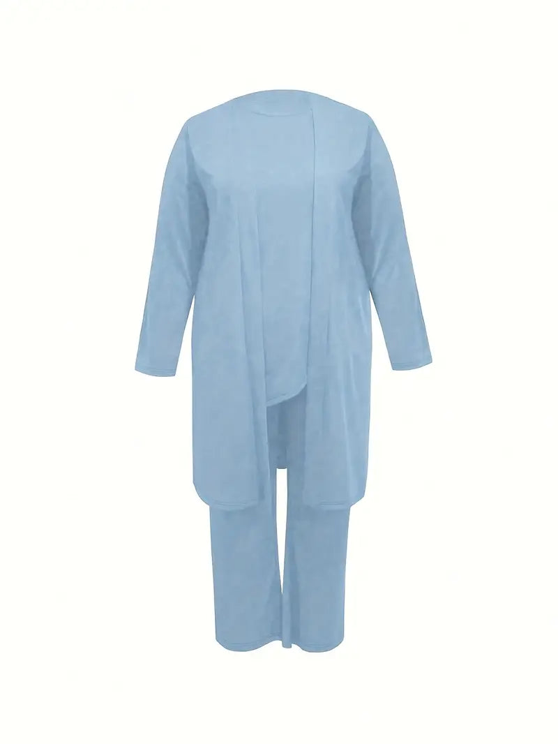 ✔ Flattering Silhouette – Designed with flowing trousers and a lightweight jacket for an elegant, comfortable fit.